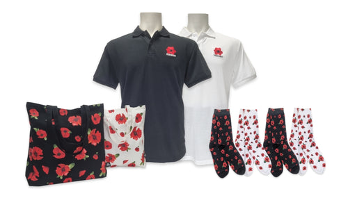 Explore our latest range of poppy-inspired apparel - polos, totes, socks. Exclusive to the Memorial Shop.