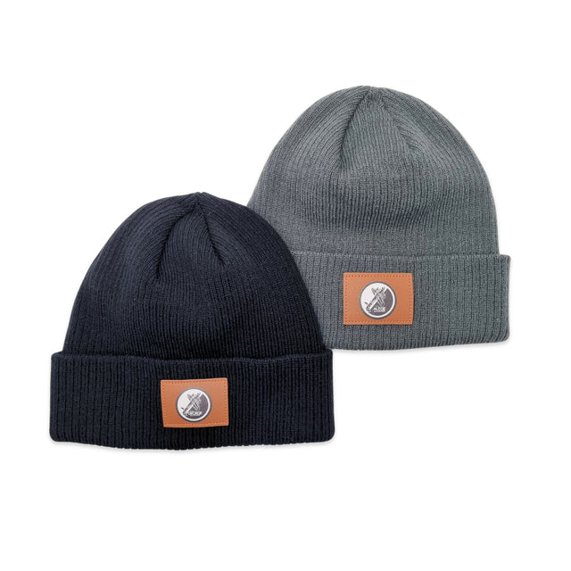 - Charcoal beanie featuring a leather-look patch