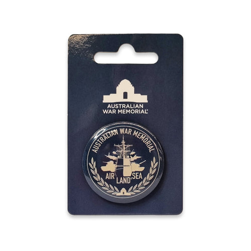 Inspired by military insignia, this 'Air, Land & Sea' button badge celebrates each arm of the Australian Defence Force - the Navy, Army and Air Force.