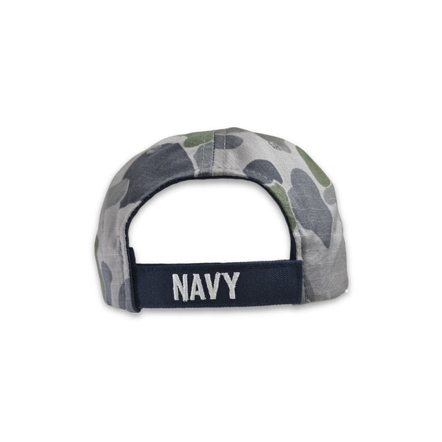 Stylish and sun smart, this classic sports cap is a perfect for use year-round. Perfect for service personnel or avid supporters of the Royal Australian Navy, this design features a decommissioned camouflage print (DPNU) and official brandmark of the Navy.
