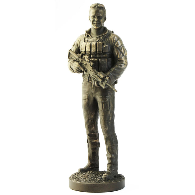 This miniature figurine depicts Corporal Cameron Baird, VC, MG in his combat gear, and was inspired by the life-size bronze statue standing at Currumbin RSL. The statue was erected to honour the life and death of Cameron Baird, Australia's 100th recipient of the Victoria Cross, awarded for his heroic acts of valour and self-sacrifice whilst serving in Afghanistan.