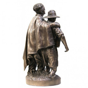 This sculpted figurine depicts walking wounded Private William Johnson, supported by Sergeant Gordon Ayre, both of 58/59 Battalion, fording a fast-flowing creek near Salamaua, New Guinea in July 1943. Wounded by a Japanese grenade, Private Johnson has a compression bandage to his forehead and wounds to both arms. Sergeant Ayre subsequently won the Military Medal for his performance during the Salamaua action. The famous image that inspired this sculpture was taken from the Assault on Salamaua newsreel by AIF newsman Damien Parer. The newsreel and images associated with this action are held by the Memorial.