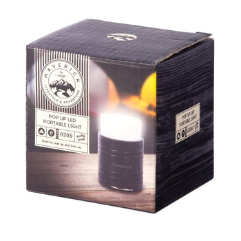 Push to pop up and turn on this versatile LED light, with handy hanging hook and magnetic base.