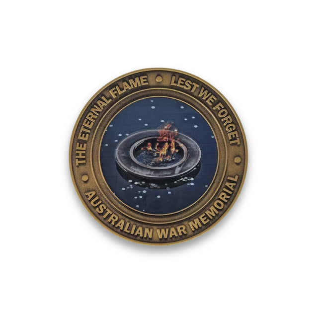 Genuinely special, this medallion commemorates the service and sacrifice of Australians who have died during times of war - symbolised by the Eternal Flame, which stands alight in the Pool of Reflection at the Australian War Memorial.