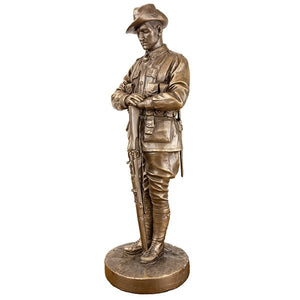 He wears the AIF's iconic slouch hat anf issue wool tunic, and is armed with the Short Magazine Lee Enfield (SMLE) No 1 MK3 rifle. His equipment is early issue Pattern 1908