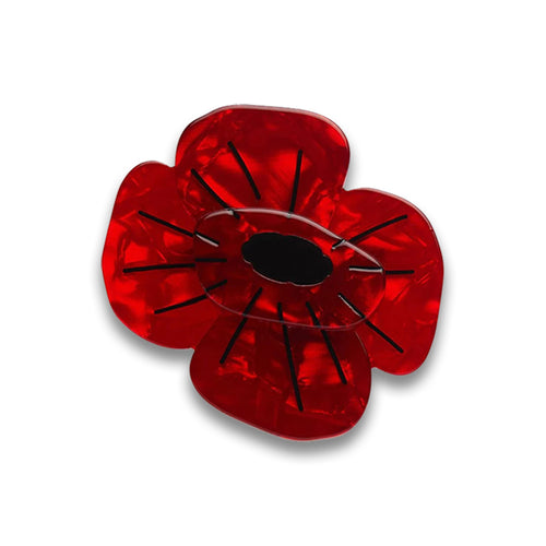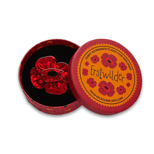 Crafted in Erstwilder's signature style, from brightly coloured and textured resins, this red and black poppy brooch is striking and symbolic. The red poppy brooch is part of the "Remembrance" collection.