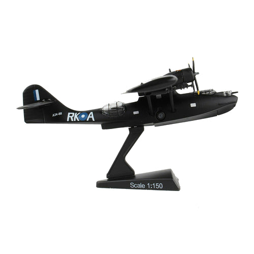 Pre-finished die-cast model (1:150 scale) of a PBY-5A Catalina "Black Cat". Modelled closely on the Catalina A24-88 used by the 42 Squadron (as RK-A) from August 1944 to July 1945 in the South East Pacific operations on sea mining missions.