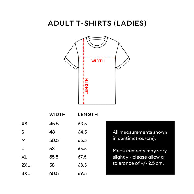 - Ladies - Adult size (XS - 3XL). Refer to size chart