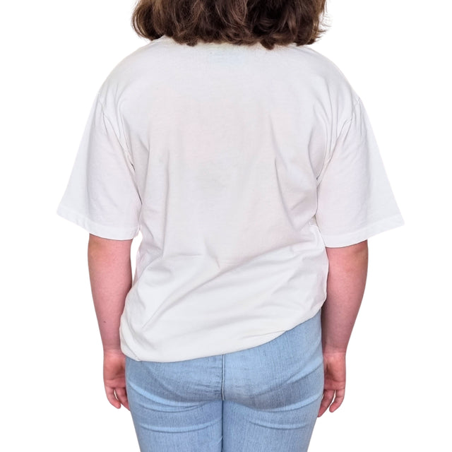 - Made from medium-weight fabric (100% combed cotton) - white.