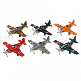 Let your imagination soar with these classic diecast pull-back aeroplanes. Planes feature a smooth pull-back action, allowing them to glide across a smooth surface upon release. A spinning propeller and openable canopy also enhance game play.